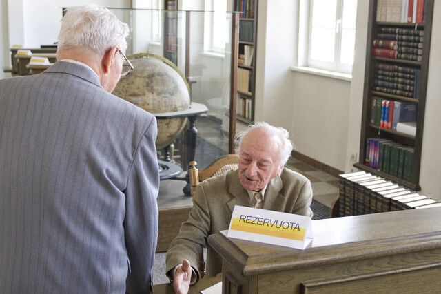 The opening of the exhibition “One hundred years for the researcher of early Lithuanian literature and book” in VU Library's White Hall.