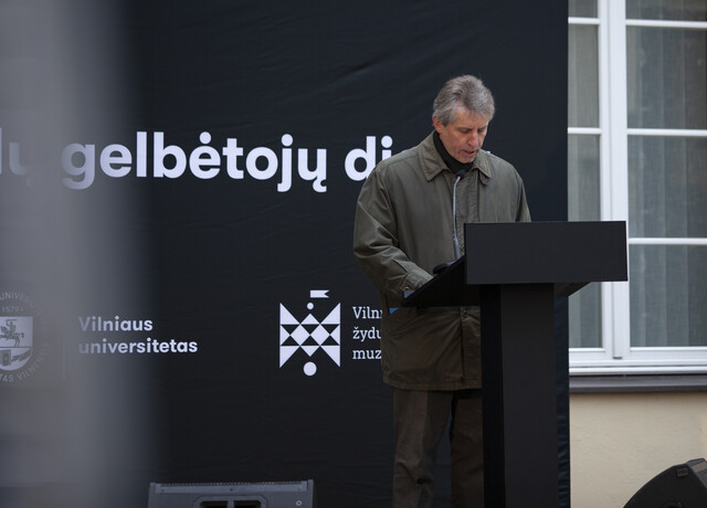 In Simonas Daukantas Courtyard leaders of the state, politicians, descendants of the Rescuers of the Jews, representatives of the Lithuanian Jews, ambassadors, Vilnius University professors, employees and students made speeches and payed their respects by reading the 1785 names of the Rescuers of the Jews.
