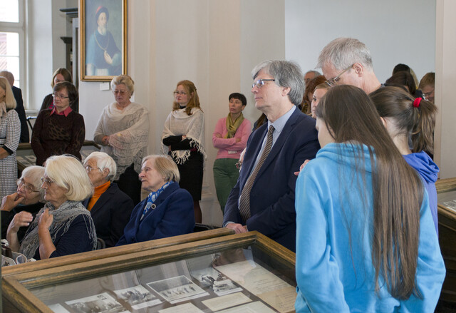 Moments from the opening of the exhibition dedicated to Česlovas Kudaba, which took place at the White Hall of Vilnius University Library.