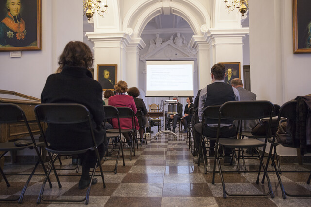 Marie Curie's 150th birthday anniversary commemoration at the Vilnius University Library.