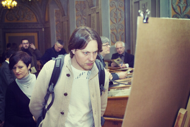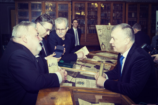 Moments from the presentation of the first anniversary coin dedicated to the map of Grand Duchy of Lithuania. The event took place in the Smuglewicz Hall of Vilnius University Library.
