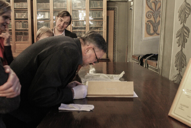 Commemoration event dedicated to the digital copy of Sluckas' transcript of the First Statute of Lithuania (1529) being delivered to Vilnius University Library.