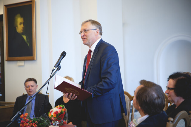 Opening of the exhibition "Vilnius University Professor Dainora Pociūtė Trailing Footprints of Reformation: From the Birthplace in Prussia to the Wall in Italy" at Vilnius University Library.
