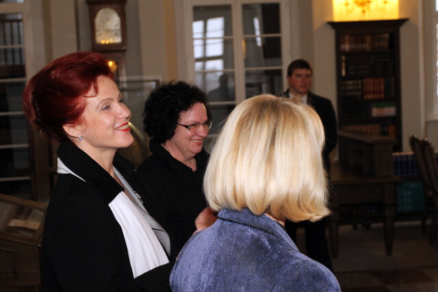 VU Library was visited by the speaker of Saeima of the Republic of Latvia - Solvita Āboltiņa. The delegation had the opportunity to visit historical halls of the Library - Smuglewicz, Lelewel and the White Halls - as well as to see various active exhibitions.