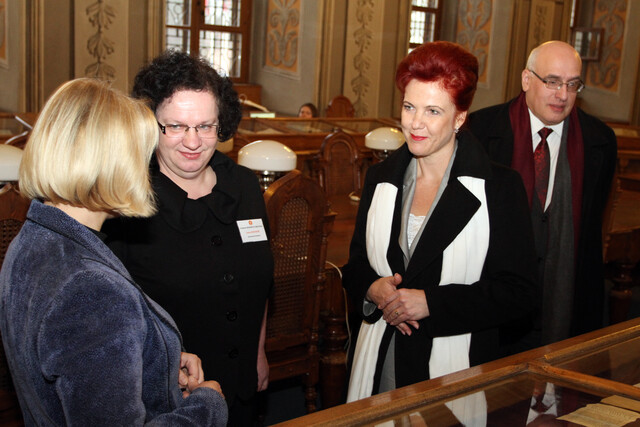 VU Library was visited by the speaker of Saeima of the Republic of Latvia - Solvita Āboltiņa. The delegation had the opportunity to visit historical halls of the Library - Smuglewicz, Lelewel and the White Halls - as well as to see various active exhibitions.