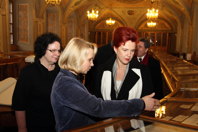 VU Library was visited by the speaker of Saeima of the Republic of Latvia - Solvita Āboltiņa. The delegation had the opportunity to visit historical halls of the Library - Smuglewicz, Lelewel and the White Halls - as well as to see various active exhibitions.