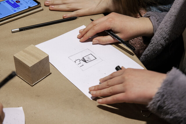 Moments from the activities organised by Vilnius University Library during the International Vilnius Book Fair in 2020. One of these activities - an ex libris workshop.