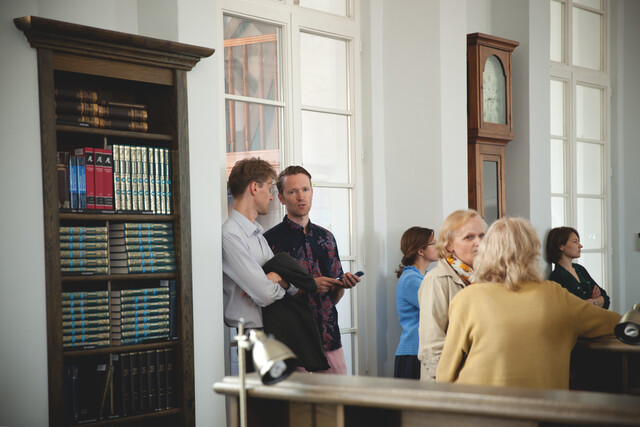 Akimirkos iš renginio Vilniaus universiteto Baltojoje salėje, kurio metu aktorius Rolandas Kazlas skaitė Vlado Šimkaus eiles.