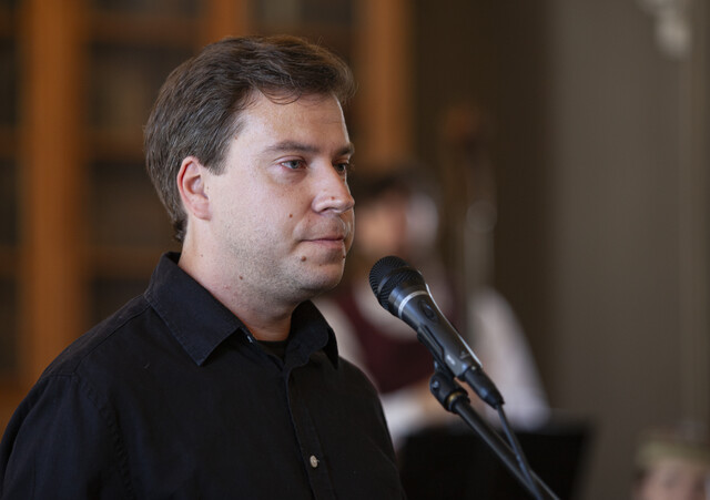 Akimirkos iš Vilniaus universiteto bibliotekos P. Smuglevičiaus salėje vykusios, Dainų šventės šimtmečiui skirtos parodos „Kada aš dainuoju, tada aš laimingas“ atidarymo renginio.